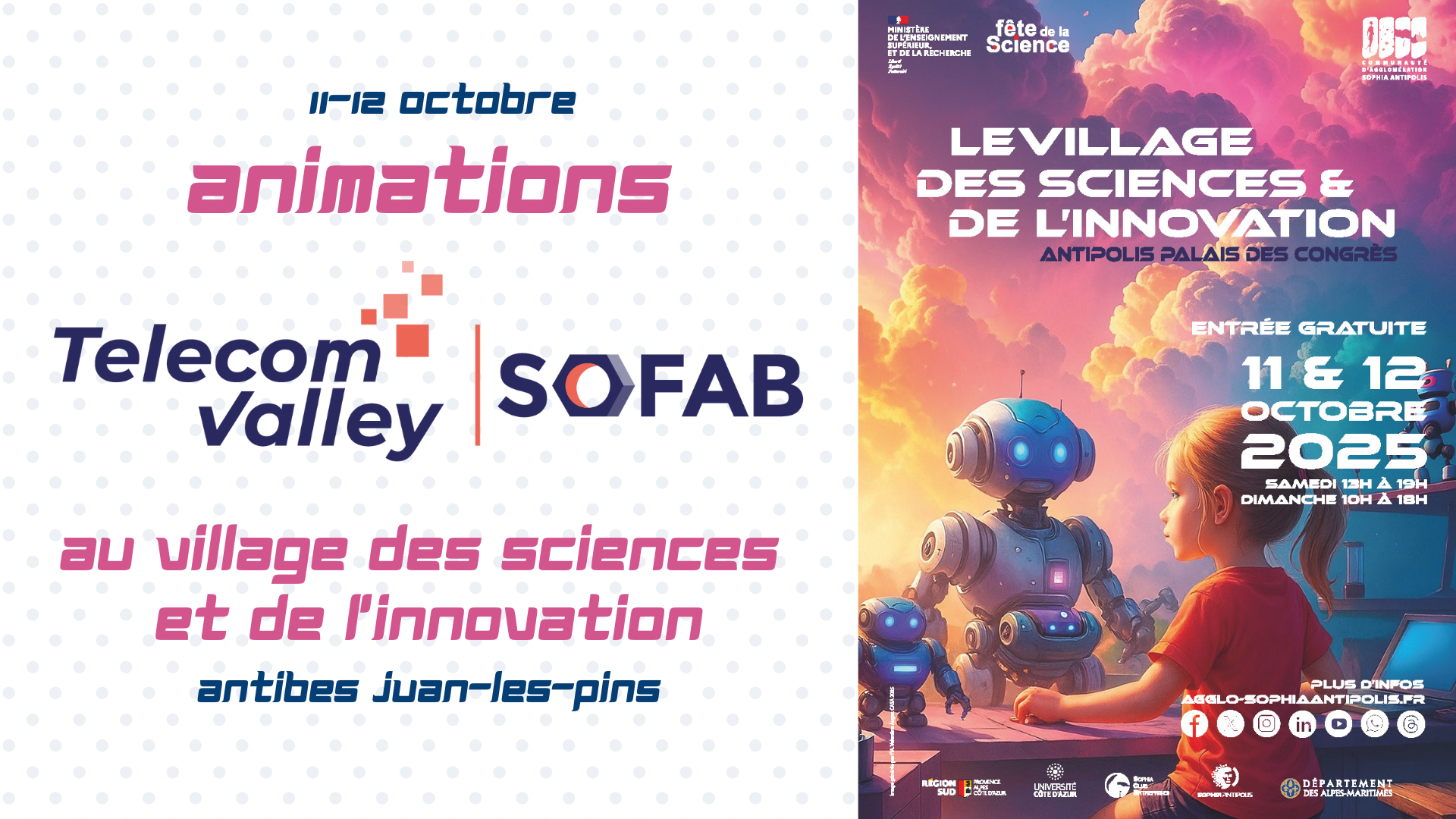 Les 11 et 12 octobre, le FabLab de Sophia Antipolis animé par Telecom Valley vous donne rendez-vous au Village des Sciences et de l’Innovation d’Antibes Juan-les-Pins !